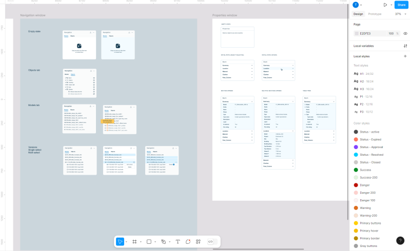 To ensure consistency with BIMcollab Nexus, I reused the existing color palette and typography. Accent colors were introduced in the model viewer’s panels to create visual hierarchy and highlight important elements.